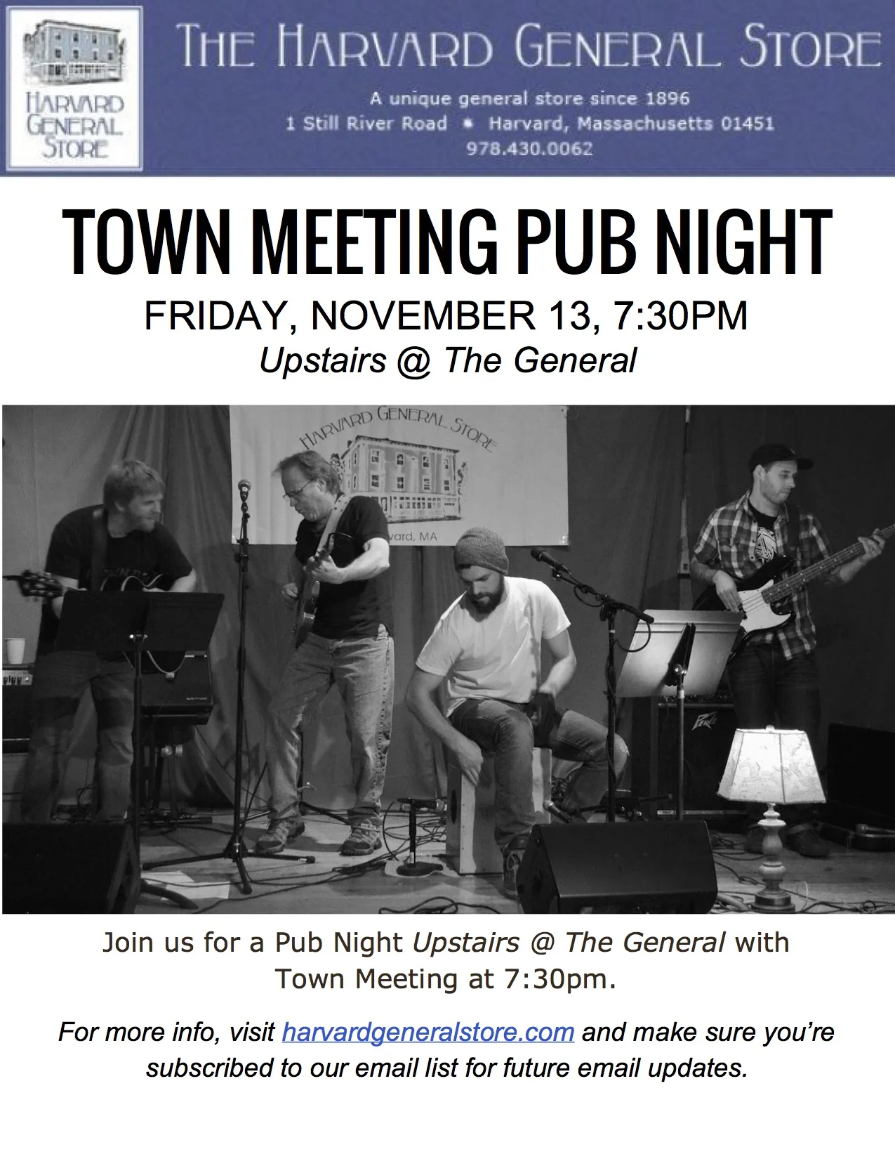 ✚ gCal ✚ iCal Upstairs @ the GeneralNovember 13, 7:30-11:00pmClick here for the Pub Night menu.townmeetingmusic.comRSVP on Facebook here