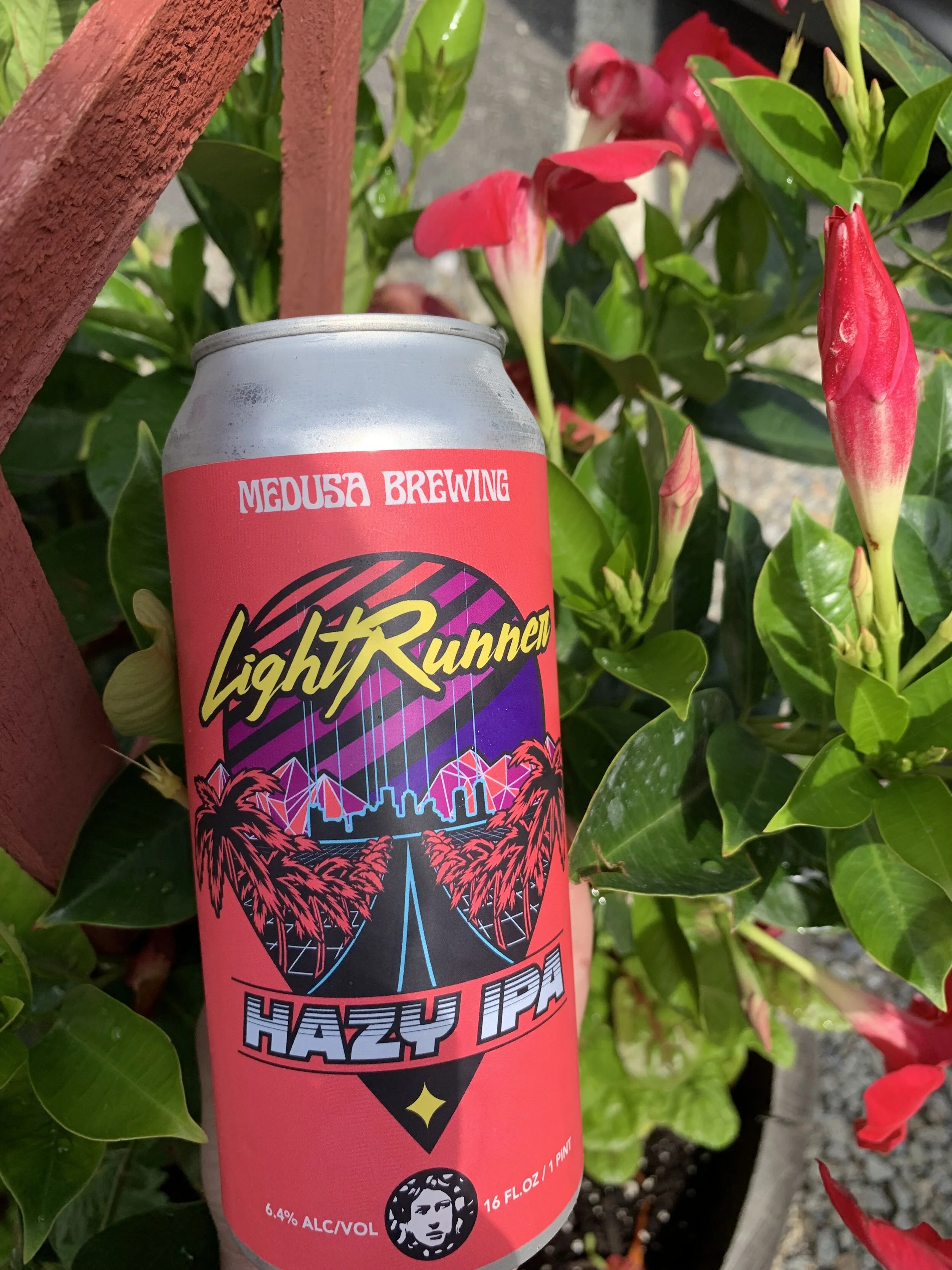 Lightrunner is a HAZY IPA with 6.4% alcohol content. intense stone fruit esters, tropical fruit and tangerine.