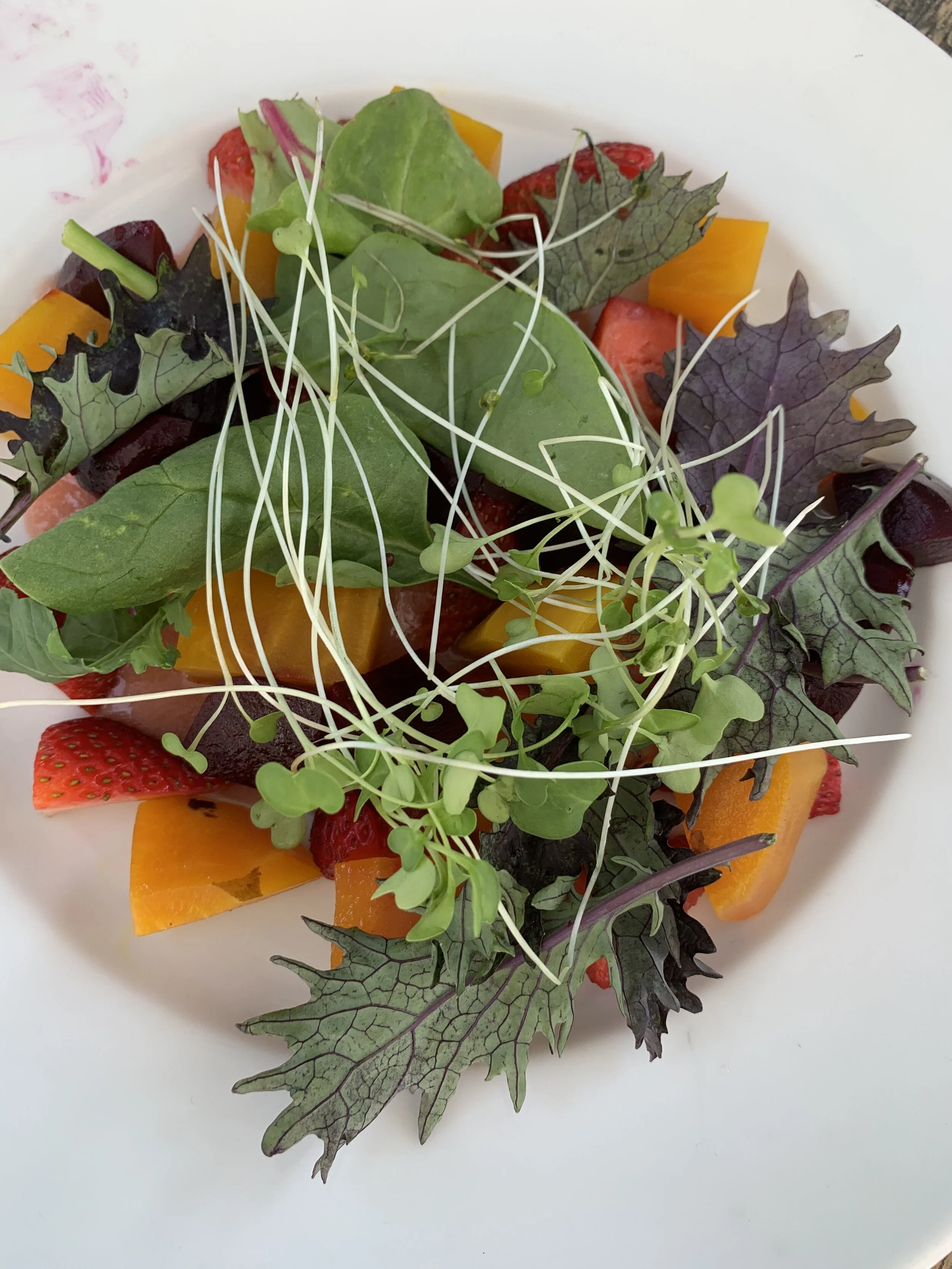 Johnny Putt Greens, Littleton brings robust flavored salad greens with microgreens, picked and packed every morning before 9AM! We feature them in our Spring Salad.