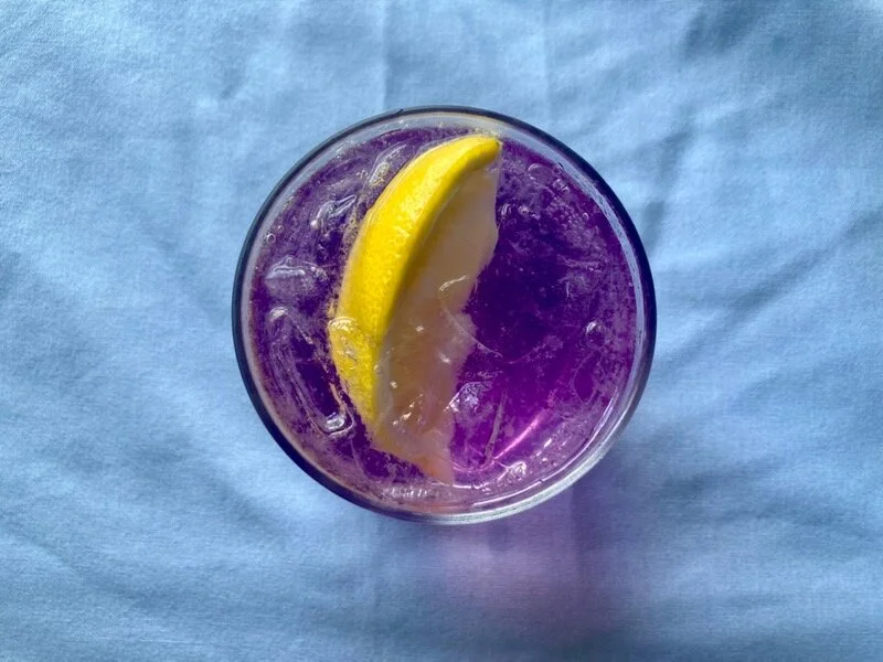 The HGS Package Store carries Empress Gin - a bright purple gin that gets its jewel toned color from butterfly pea blossoms, changes color with the addition of lemon or acid. We make this cocktail with lemon and tonic water!